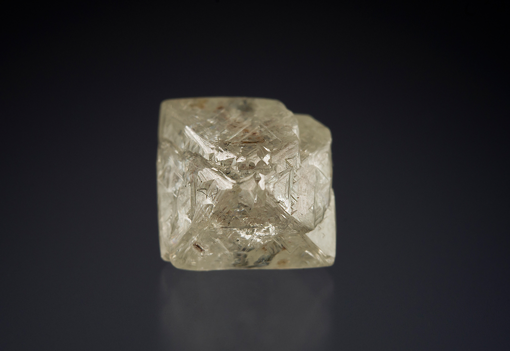 A fine white diamond from Africa. The specimen consists of two intergrown octahedrons, each showing several trigons across their faces - Beautiful form all around.