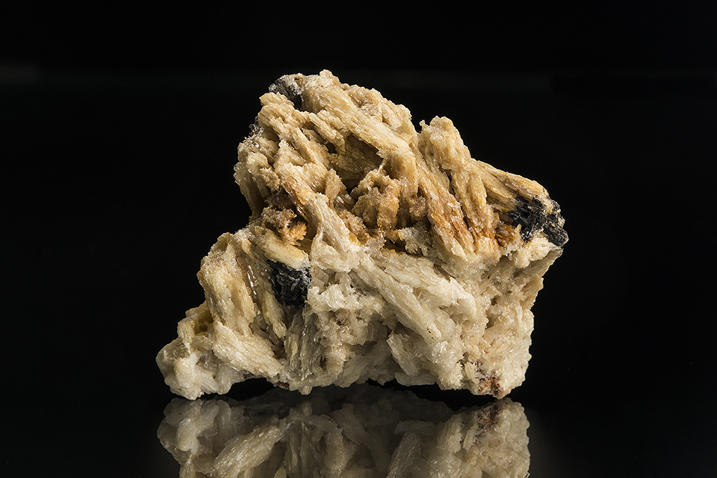 Leadville produced massive amounts of cerussite, and lots of specimens of various habits got saved. This coarsely crystalline “jackstraw” specimen has some light iron staining and a few spots of a botryoidal black mineral that could be hydrohetaerolite.