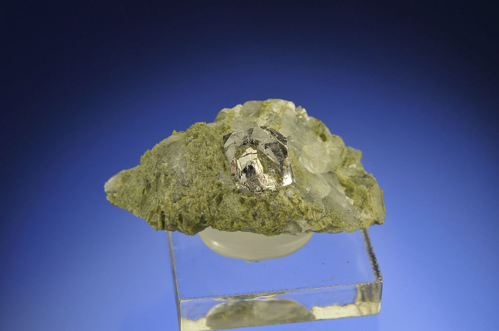 A gorgeous 7 mm crystal on quartz and epidote matrix. A fantastic thumbnail.