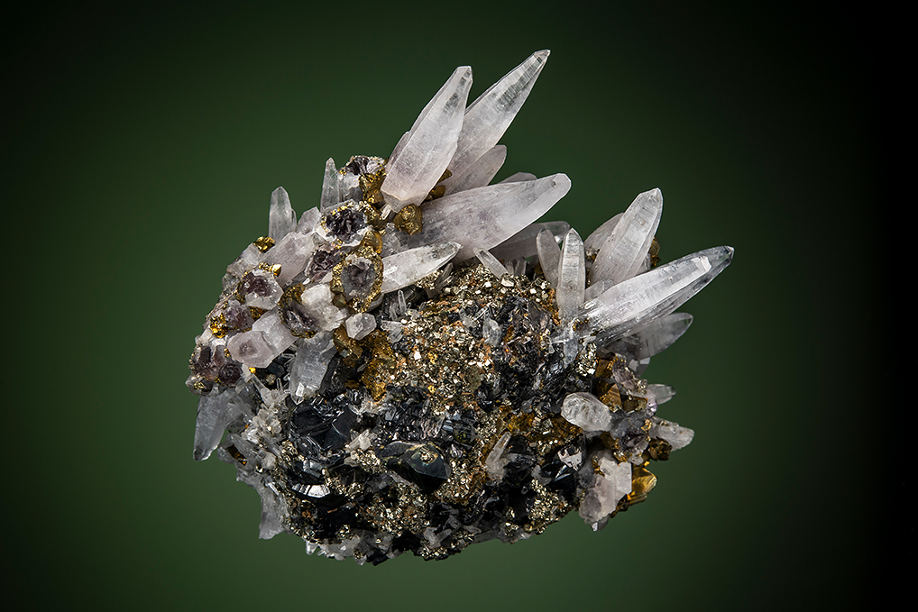 QUARTZ on CHALCOPYRITE, PYRITE and SPHALERITE