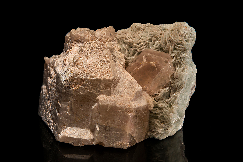 BERYL var. Morganite on ALBITE var. Cleavelandite and QUARTZ