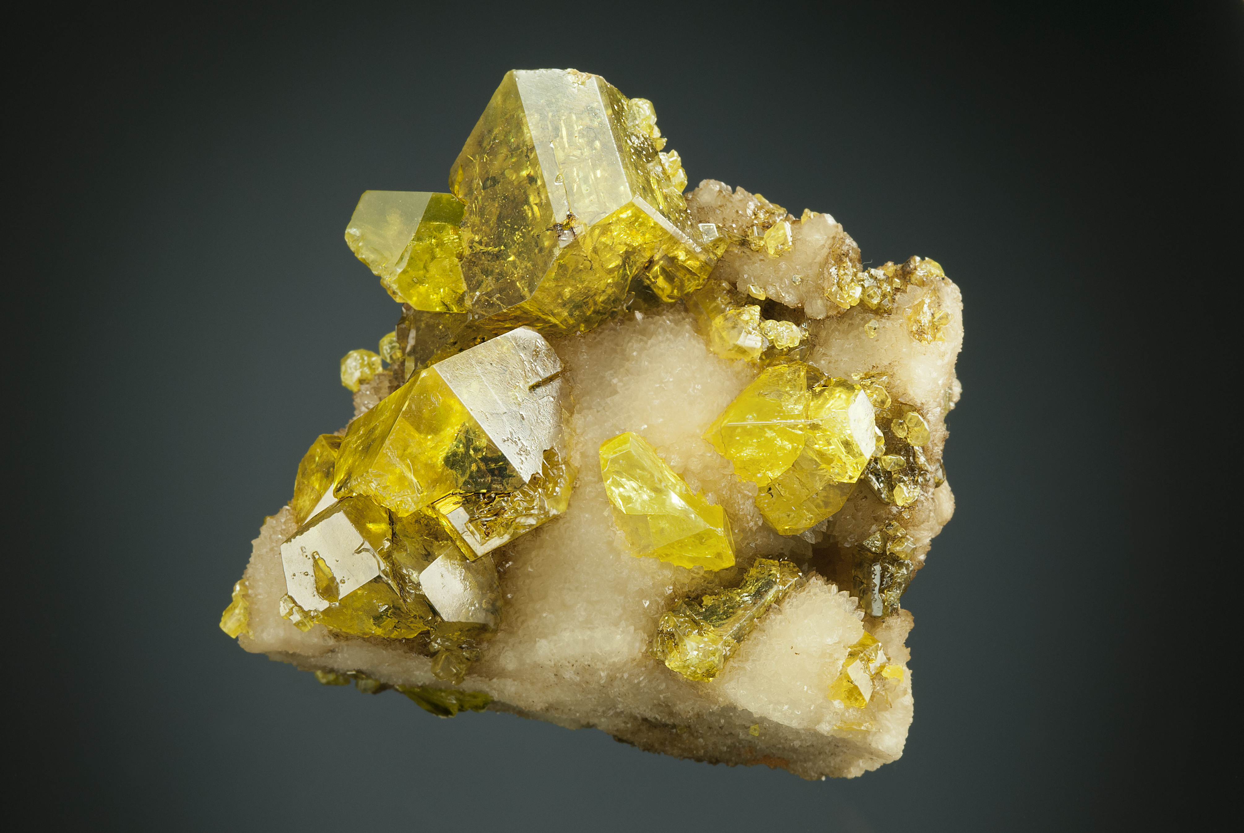 A sharp cluster of several large crystals, this specimen comes with a custom Sunnywood base.