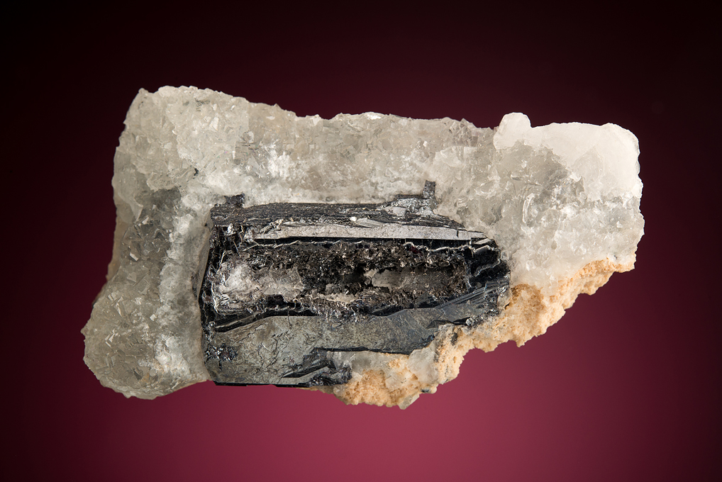 This is a very unusual specimen from Guanajuato in that the pyrargyrite was nearly covered with pale green fluorite. Some of the fluorite was mechanically removed to expose the huge pyrargyrite crystal underneath.
