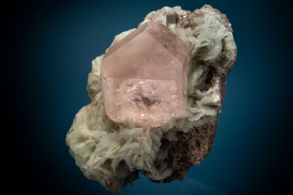 BERYL var. Morganite (restored) on ALBITE var. Cleavelandite