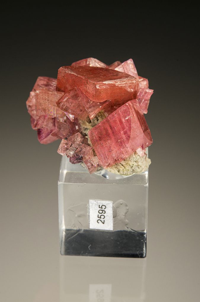 This is really a fantastic small miniature of the rare and sought after “red” smithsonite from Tsumeb. The rhombs are quite lustrous and well-formed with only minimal damage. Bill and Carol Smith acquired this one from Luis Miguel Fernandez Burillo Minerales.